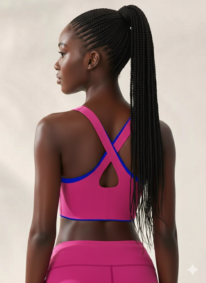 A black lady during indoor Pilates session using a pink Pilates circle